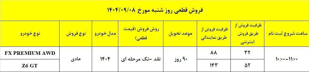 شرایط فروش فونیکس اف ایکس دو دیفرانسیل و Z6 جی تی در 8 آذر 1404