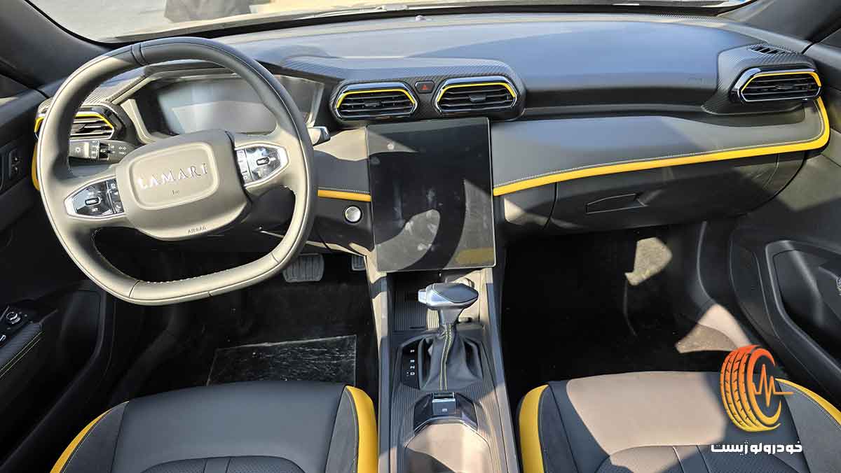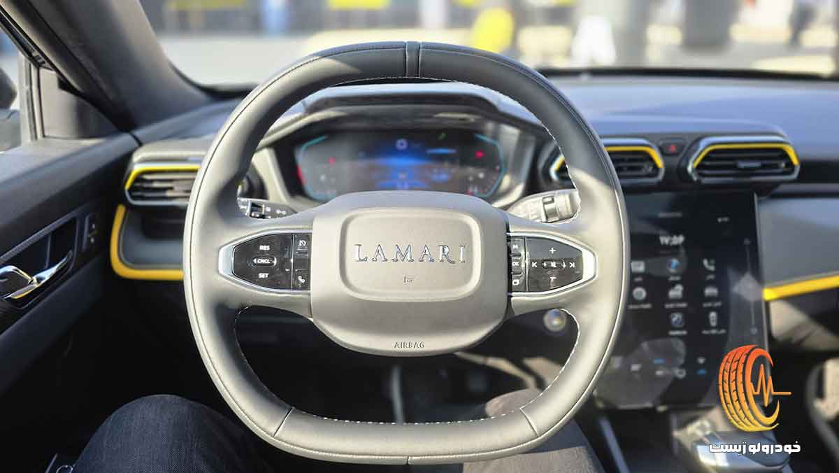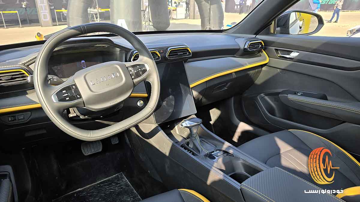 داخل کابین و داشبورد لاماری اکو ترکیبی از حس اسپرت و لوکس ارائه میدهد. داشبورد با دو نمایشگر بزرگ (13 اینچ مرکزی عمودی و 7 اینچ پشت فرمان)، دریچههای تهویه الهام گرفته از لامبورگینی، فرمان D کات و تریم دو رنگ با دوخت زرد، فضای جوان پسندی ایجاد کرده است. کیفیت متریال در سطح قابل قبولی قرار دارد ولی بخشهایی از پلاستیک خشک دیده میشود. فضای ردیف دوم برای سه سرنشین بزرگسال قابل قبول است و صندلیها راحتی مناسبی دارند. به گزارش خودرولوژیست، ارگونومی صندلیها و عایق بندی کابین از نقاط قوت این سدان چینی به شمار میروند.