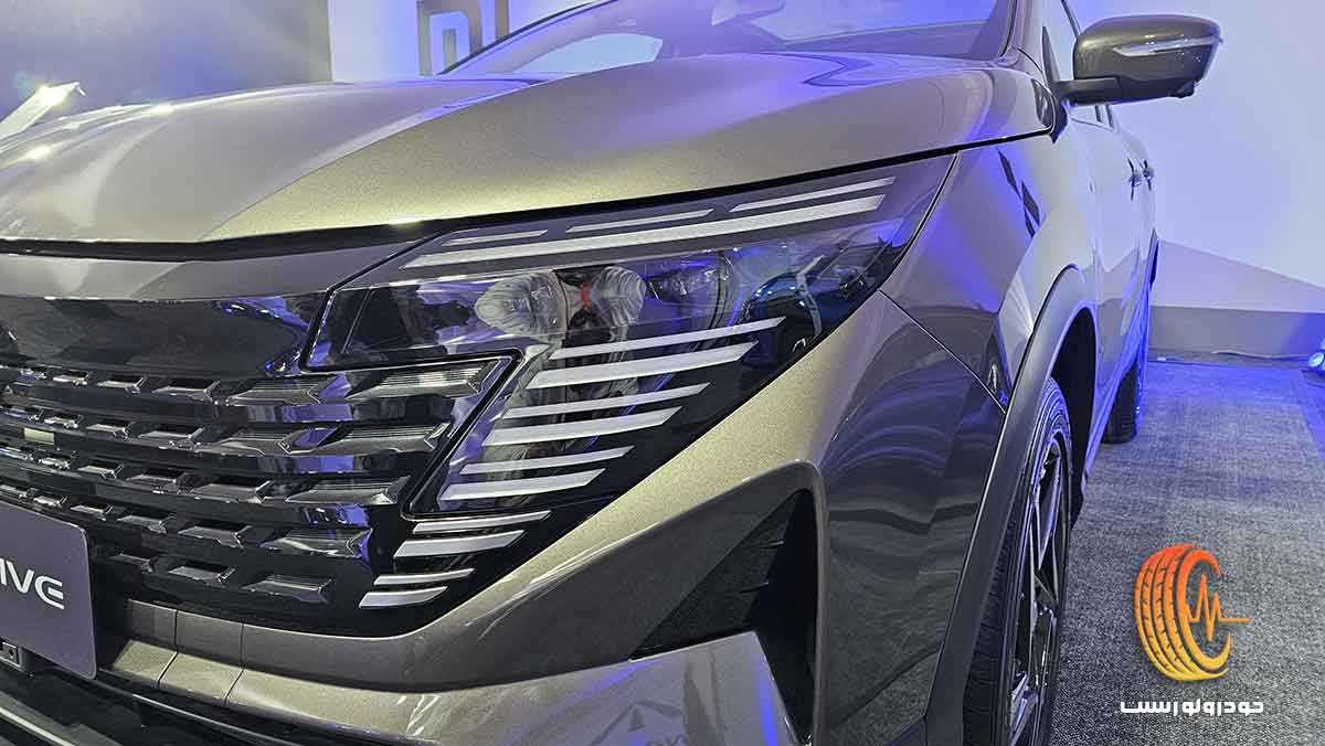 خطوط روی کاپوت عضلانی طراحی شدهاند و حس حرکت و قدرت را القا میکنند. در نمای جانبی، خط شانهای که از چراغ جلو تا چراغ عقب امتداد یافته، رینگهای آلیاژی با طراحی مدرن، و ستونهای مشکی رنگ که سقف را به صورت شناور نشان میدهند، از جمله ویژگیهای بارز طراحی این خودرو هستند. آینههای جانبی برقی با گرمکن و راهنما، دید خوبی را برای راننده فراهم میکنند. نمای عقب با چراغهای LED باریک و کشیده با گرافیک مدرن، اسپویلر سقفی، و سپر عقب با دیفیوزر و خروجیهای اگزوز تزئینی، ظاهری پویا و امروزی دارد. سقف پانوراما و ریلهای سقفی نیز به زیبایی و کارایی خودرو افزودهاند.