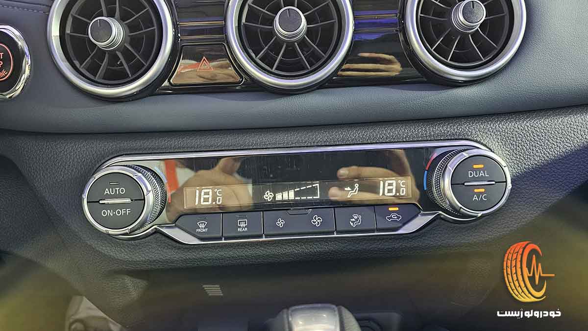 سنسور باران نیز فعالسازی خودکار برفپاککنها را بر عهده دارد. یکی از برجستهترین امکانات این خودرو، دوربین ۵۴۰ درجه است که دید کاملی از پیرامون خودرو و زیر آن را به راننده ارائه میدهد. این ویژگی به ویژه در مسیرهای ناهموار و هنگام پارک کردن بسیار کاربردی است. سیستم تهویه مطبوع اتوماتیک با خروجی برای سرنشینان عقب، هوای مطبوعی را در سراسر کابین فراهم میکند. سیستم صوتی با کیفیت، اتصال بلوتوث، و پورتهای USB از دیگر امکانات این خودرو هستند. همچنین آینههای جانبی برقی با گرمکن و قابلیت تاشو، از دیگر تجهیزات رفاهی نیسان قشقایی محسوب میشوند.