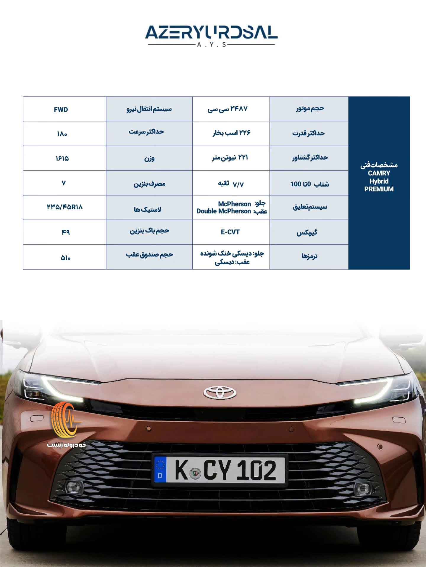 مشخصات فنی و عملکرد تویوتا کمری هیبرید آذریوردسال